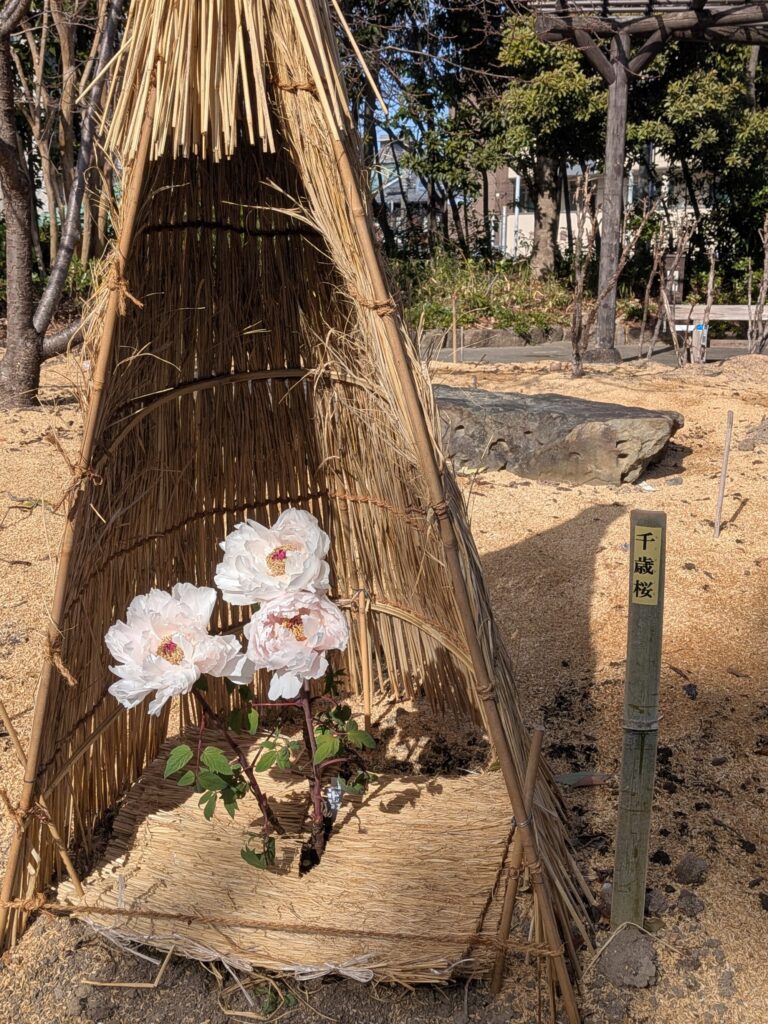 それで徳川園で冬牡丹が咲いてるらしいとの情報を見つけたから